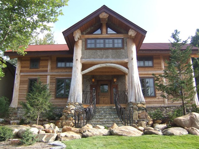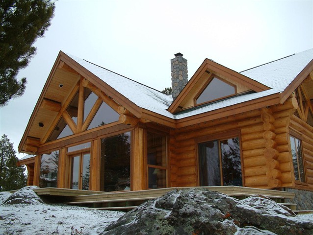 The Kokannee built as a chinker-style, hand-hewn log home...